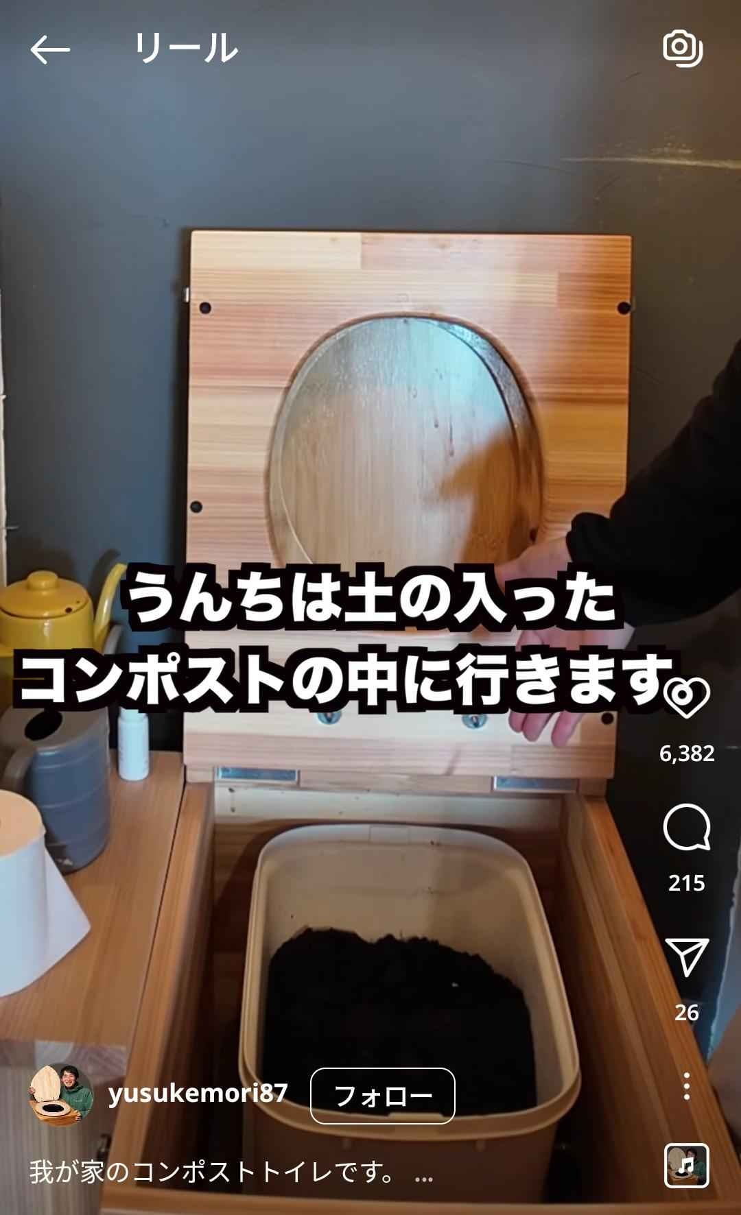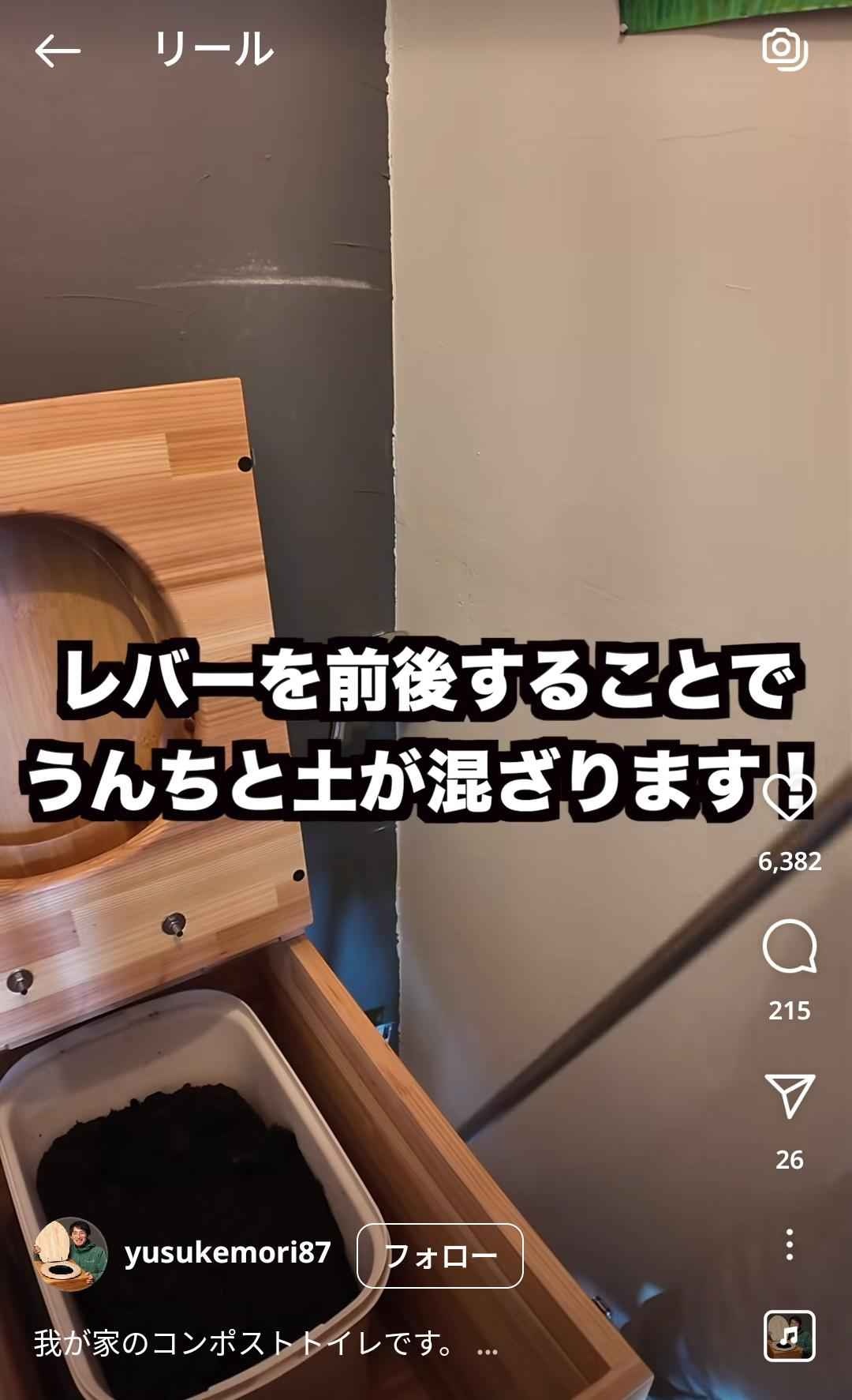 - バイオトイレは常に中がかき回されて、水分飛ぶから臭いしないんや