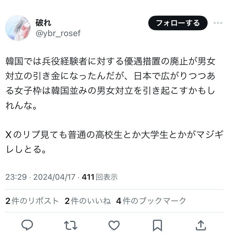 若者世代の男女対立が韓国並みになる日も近いだろう