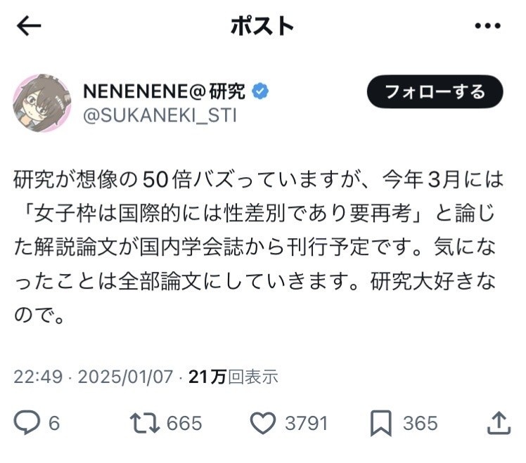 女子枠の差別性・違法性を指摘する査読付き論文も出版された模様