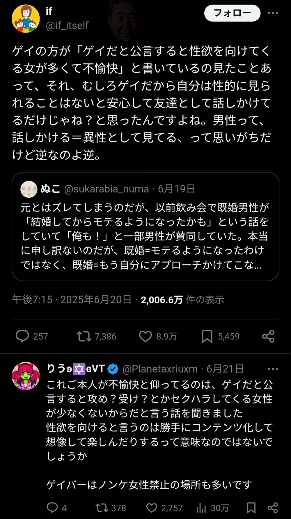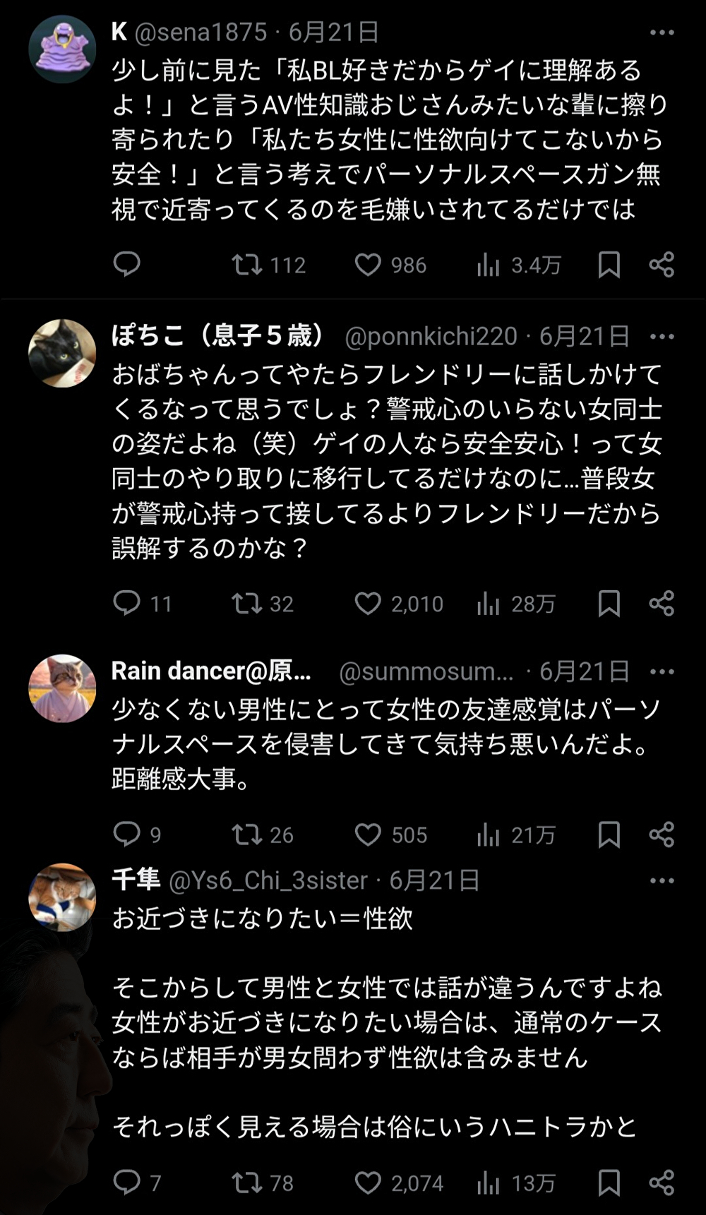 ゲイ「ゲイだと公言すると性欲を向けてくる女が多くて不愉快」識者「あのさぁ」