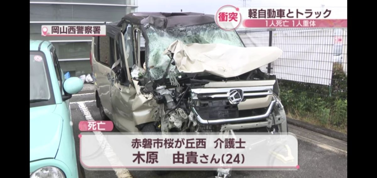 軽自動車と大型トラックが衝突 軽自動車に乗っていた女性(24)が死亡 1人重体 岡山市