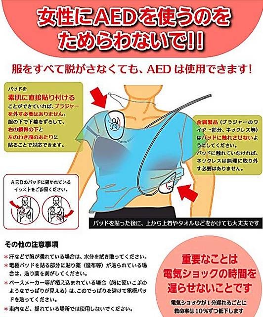 - 女性にAEDを使うのをためらわないで!!