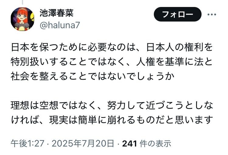 声優の池澤春菜「日本を保つために必要なのは日本人の権利を特別扱いすることではない」