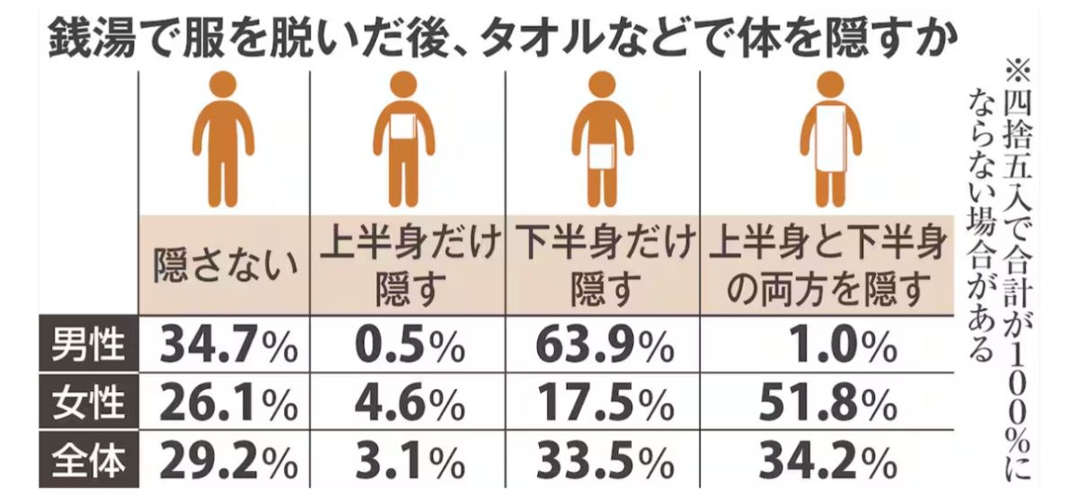銭湯で全身をタオルで隠さない「堂々派」は29%
