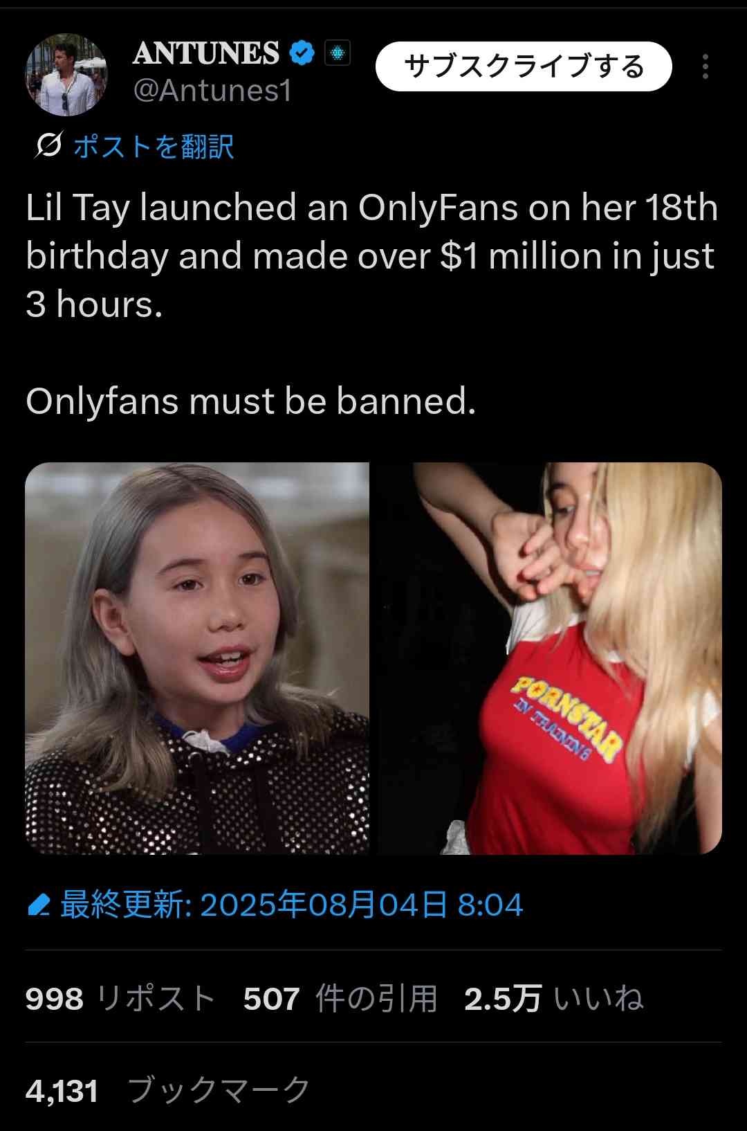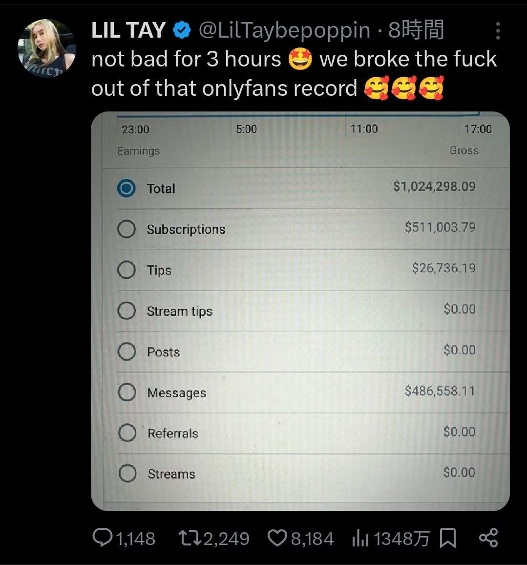 Onlyfans始めて3時間で100万ドル稼ぐ