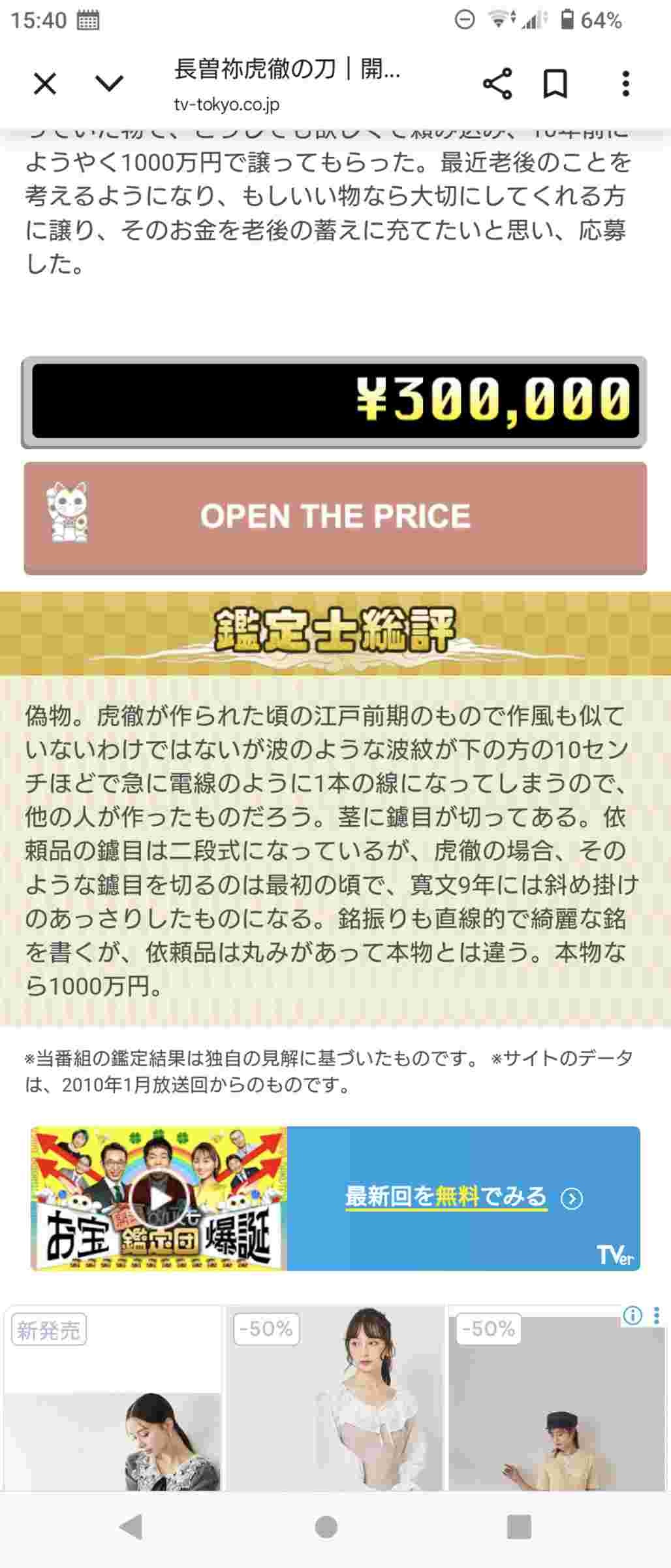 独身「結婚せずためた1000万円で買った名刀!!お宝鑑定団に見せたるで」←オープンtheプライスぅw