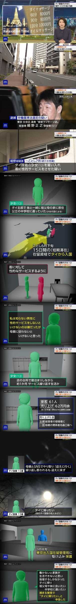 個室マッサージ店から保護されたタイ人12歳少女、仕事場の台所で寝泊まりしていた