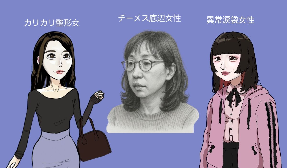 整形したり、ファッションやメイクに力を入れても「カリカリ整形女」「異常涙袋女性」