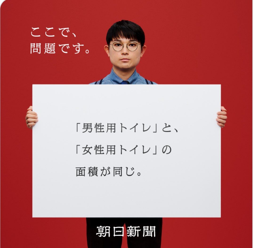 朝日新聞「男子トイレと女子トイレの面積が同じで不平等!男子トイレの面積を削ろう」