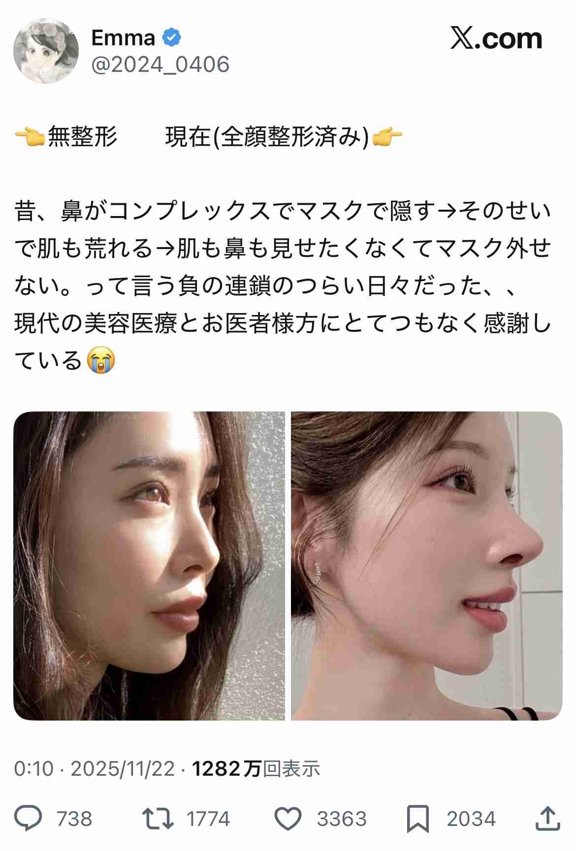 【画像】まんさん「鼻がコンプレックスだったがお医者様に感謝👩」
