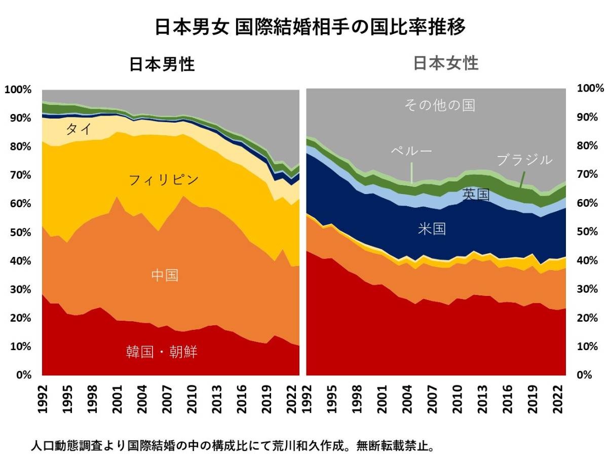 - 日本の男はどこの国との組み合わせが多いの?