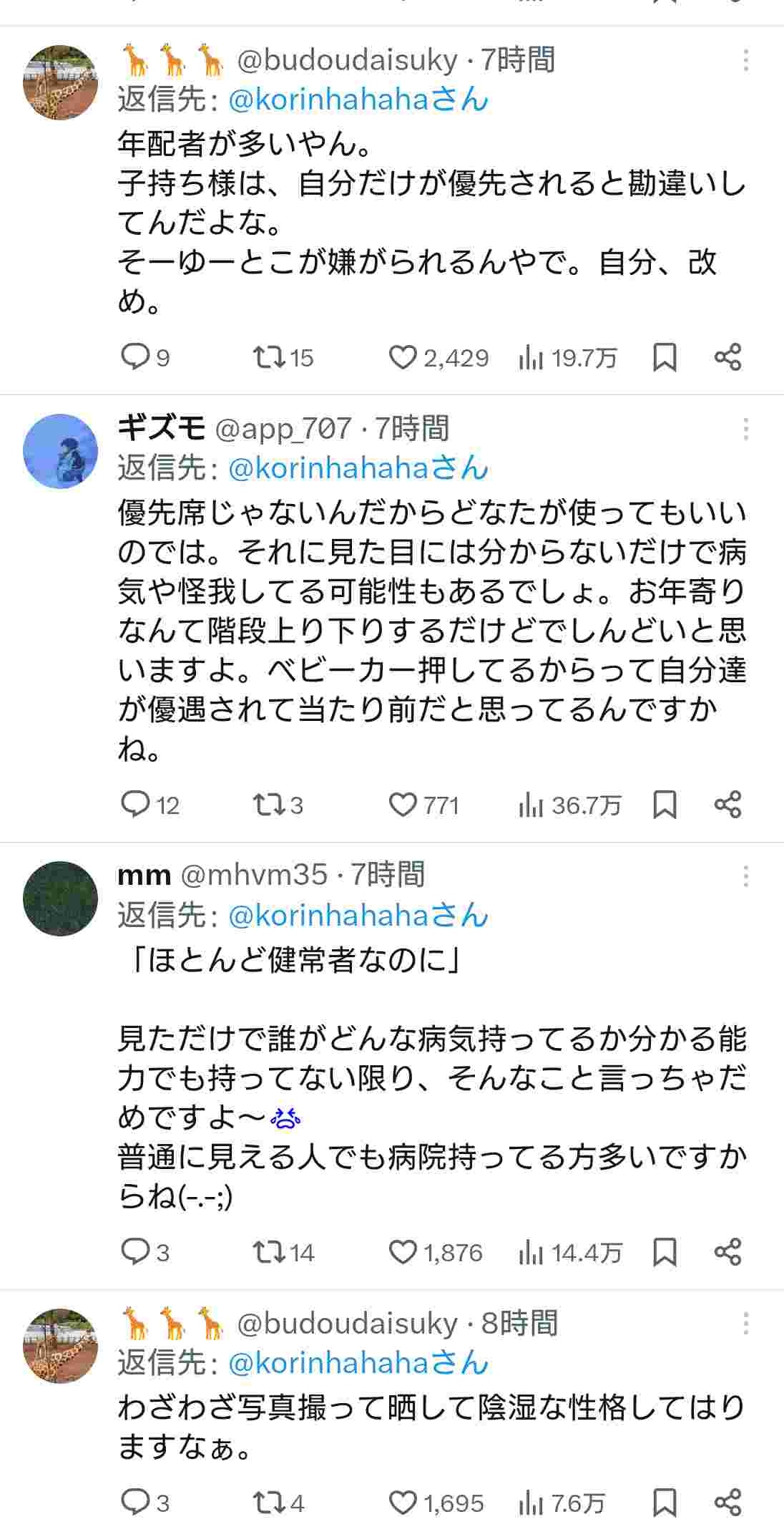 第一昔の子連れが子連れだからってなんでも優先しろって言うてたか?