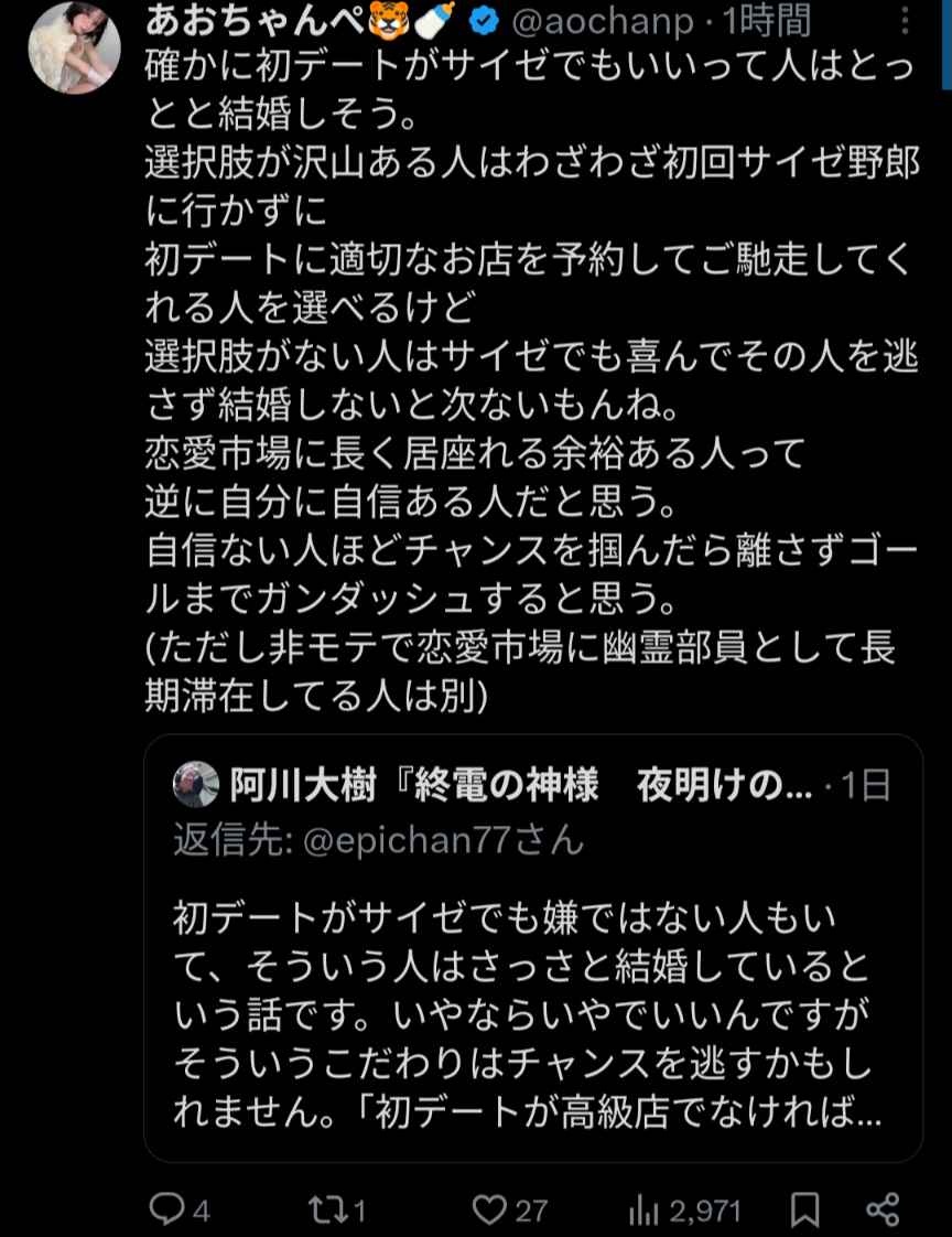 - なんで女って年齢が上がるほど相手に望む条件が上がっていくの?
