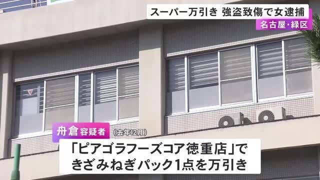 舟倉容疑者は去年12月、緑区元徳重のスーパー「ピアゴラフーズコア徳重店」で刻みネギのパック1点を万引きし、取り押さえようとした女性警備員(59)を引き倒して足蹴りし、右足を骨折するなどの大ケガをさせた疑いが持たれています。