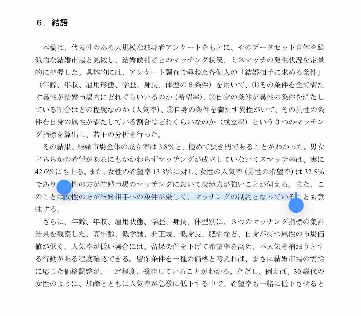 ここで言う希望率とは「結婚相手として自らが希望する条件を満たした異性の率」やな
