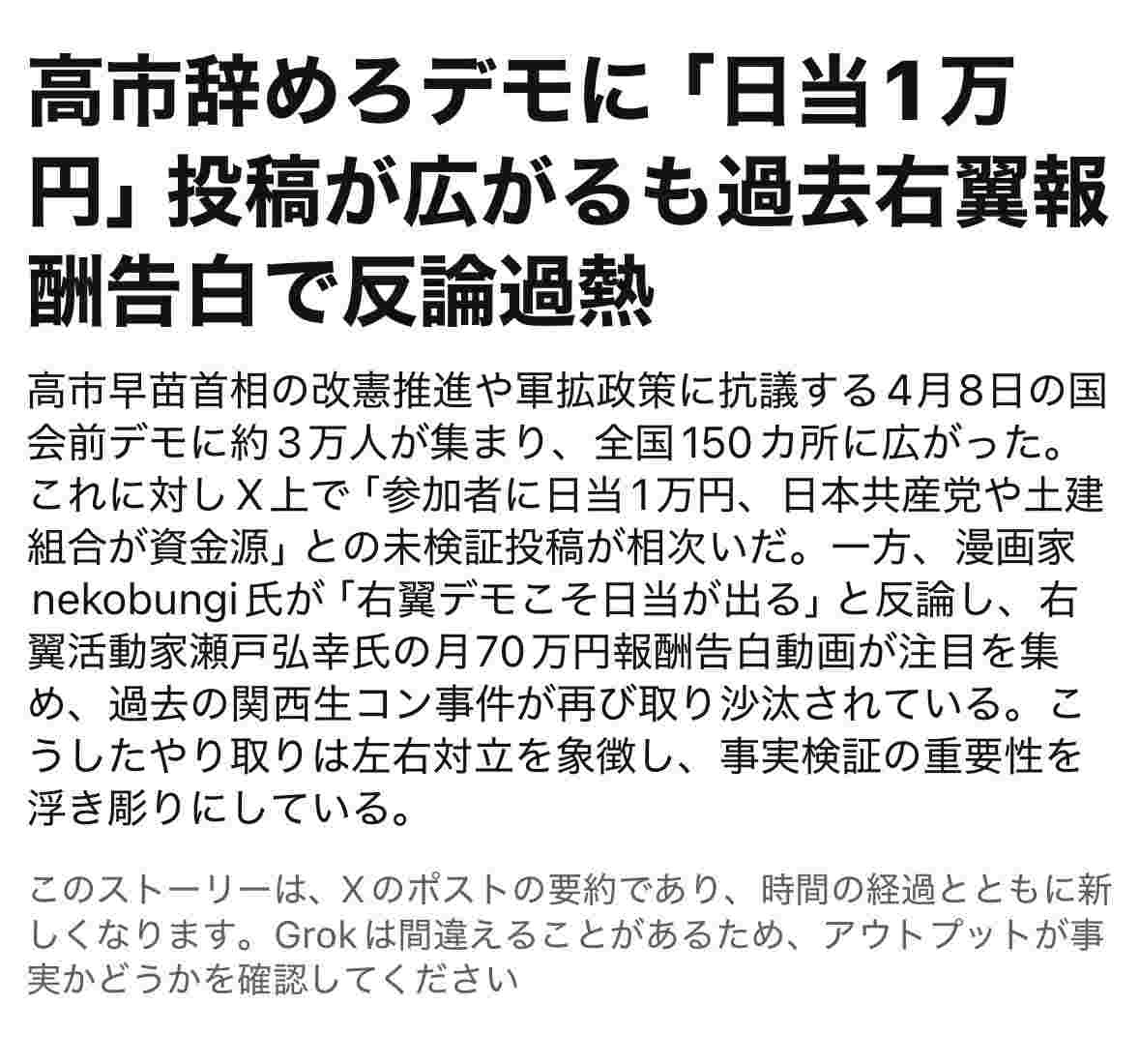 - 高市やめろデモは日当出てないやろ