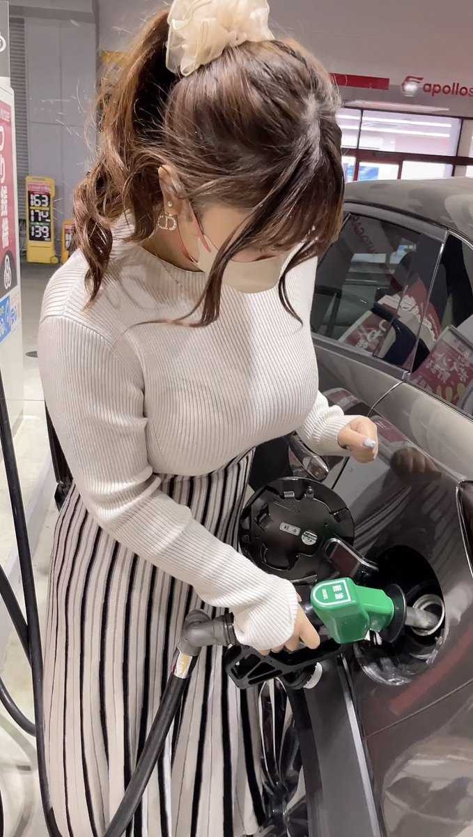 【画像】ニットまんさん、ガソリン入れるの大変そう