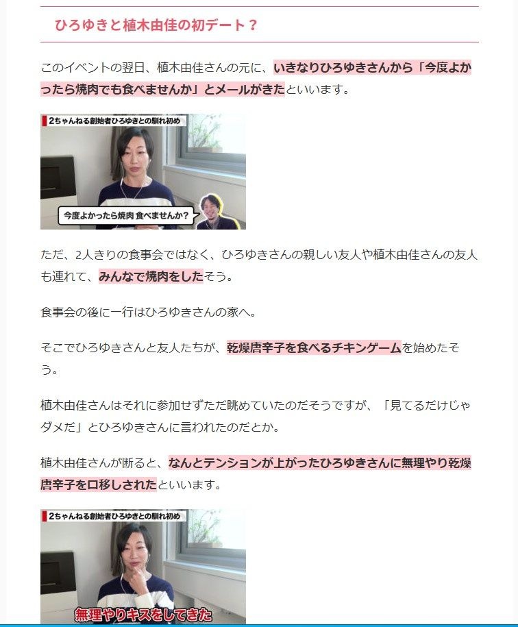 西村「はい、無理矢理でした。ひろゆきくんは仲間に『あの女モノにするから見てろ』って確信犯だったみたいで。それからは色んな媒体であの日俺はあの女にキスしてやったんだみたいに武勇伝として吹聴してるくらいですからね」編集部「ご自分でもそのお話をされてるんですね」