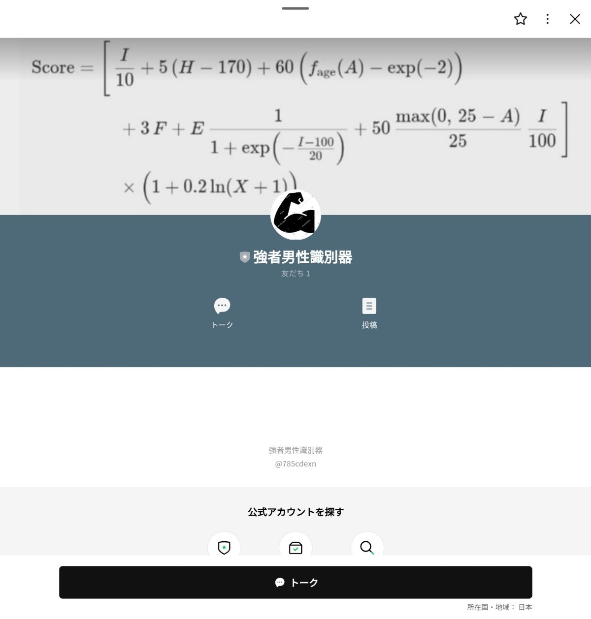 Score = [ I/10 + 5*(H–170) + 60*( f_age(A) – exp(–2) ) + 3*F + E*f_edu(I) + SynergyBonus ] * Multiplier * Bで強者男性かどうか分かるぞwww