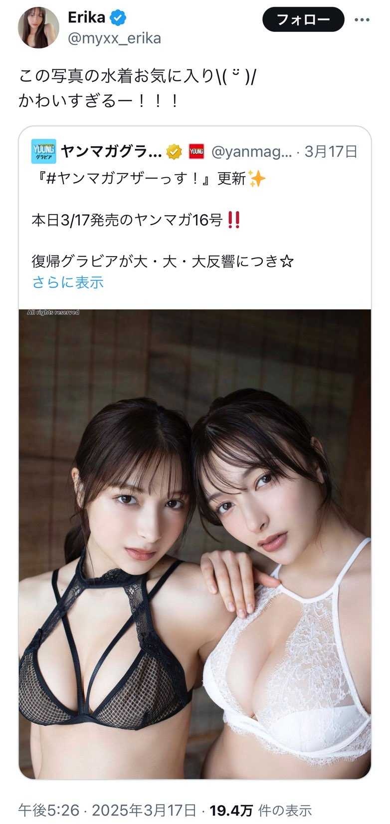 この子ってスク水風の競泳水着グラビアを姉妹でしてた子やろ?
