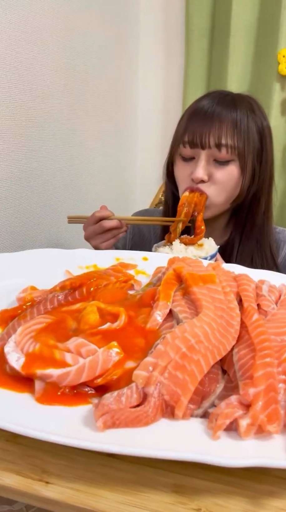 【画像】サーモン大好き女、限界突破💥