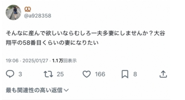 - 大谷の58番目の妻になれるかは置いておいて高額納税者は一夫多妻認めるのありだよな