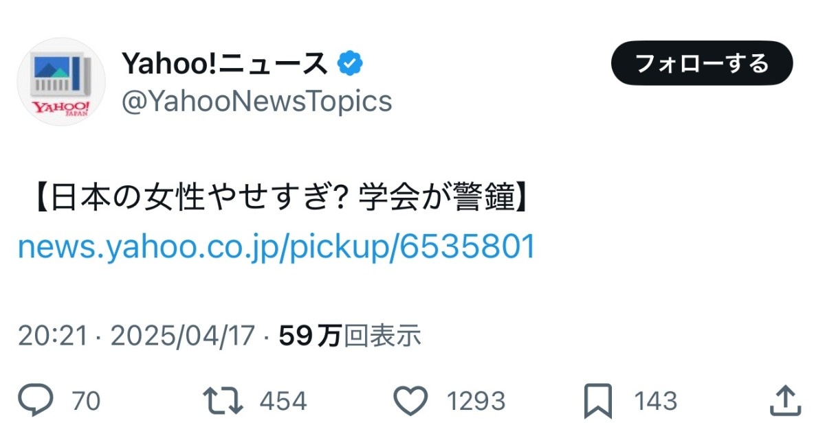 ガリガリ女は男が本能的に避ける - 31 名前:ここからは表現の自由でイカせていただきます 投稿日時:2025/04/25(金) 17:24:31.127 ID:PDfIiglG4