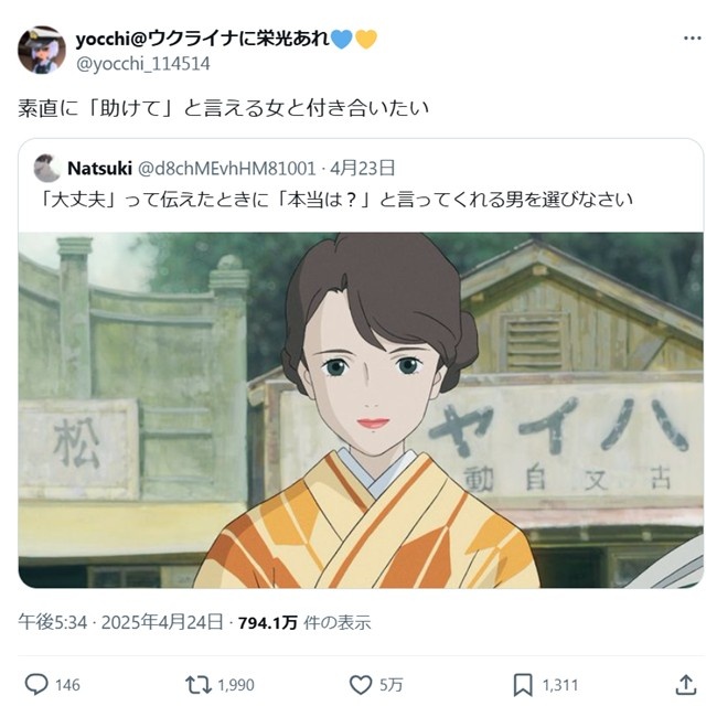 世の中本当はと聞ける男と大丈夫じゃないと伝えられる女が付き合ってる