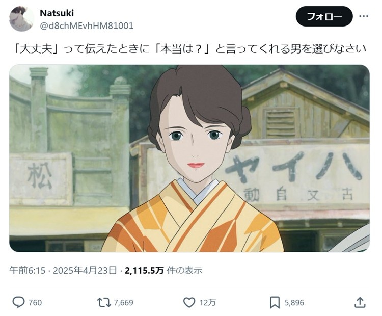 【共感】女さん「『大丈夫?』って伝えたときに『本当は?』と言ってくれる男を選びなさい」12ま〜んいいね