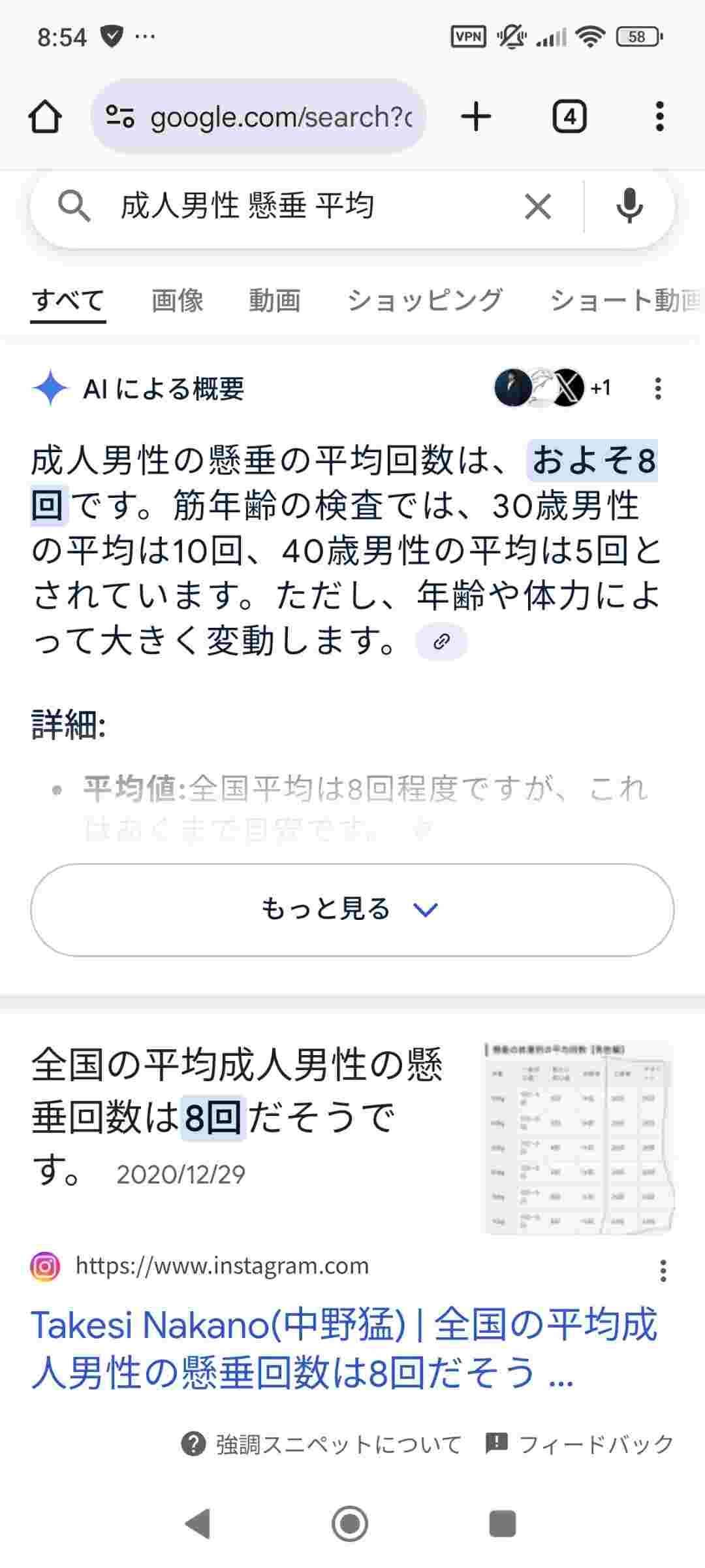 成人男性の懸垂の平均回数は「8回」らしい