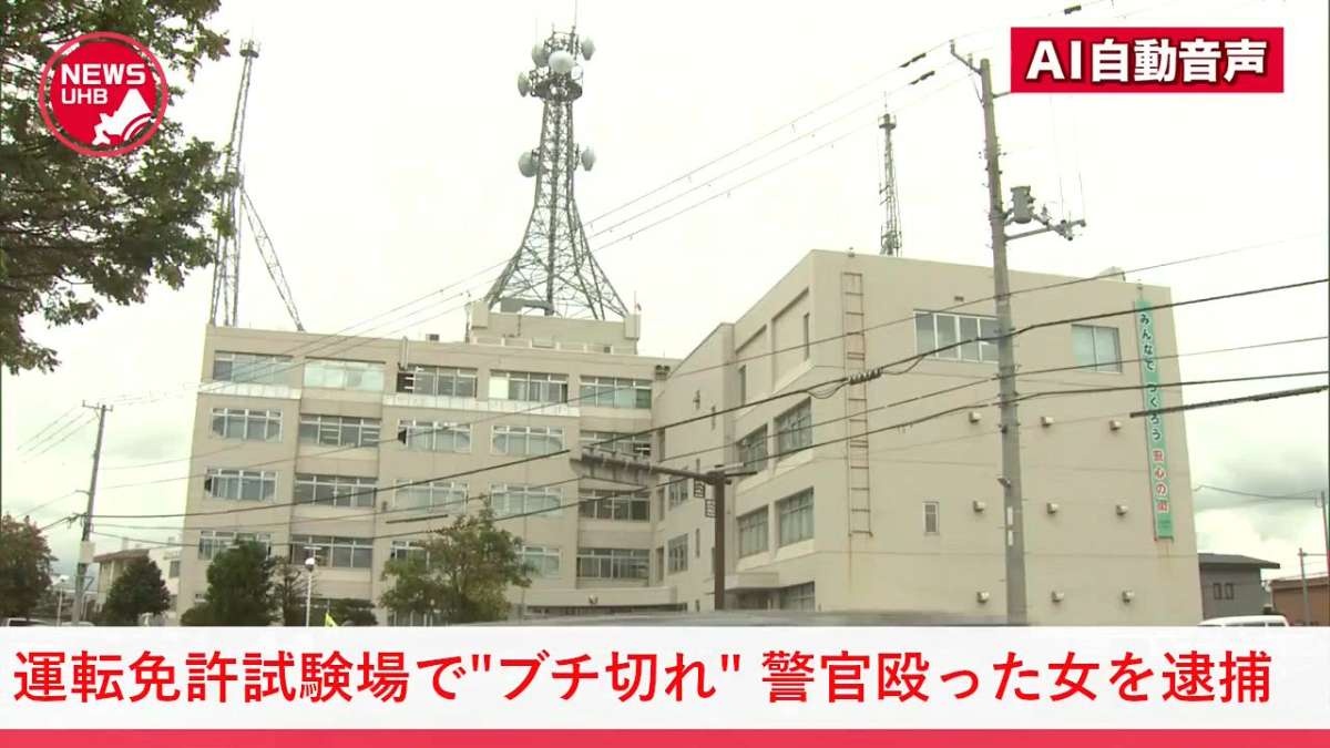 女は5月20日午前8時ごろ、函館市の運転免許試験場で、カウンターの上に置かれていた消毒液用容器で北海道警察函館方面本部交通課の32歳の女性巡査部長の顔面を殴打し、職務を妨害しました。