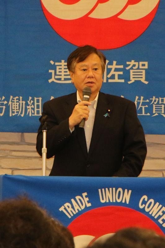 立憲民主党の原口一博衆院議員=党佐賀県連代表=は7日、佐賀市で開かれた連合佐賀の参院選総決起集会で、