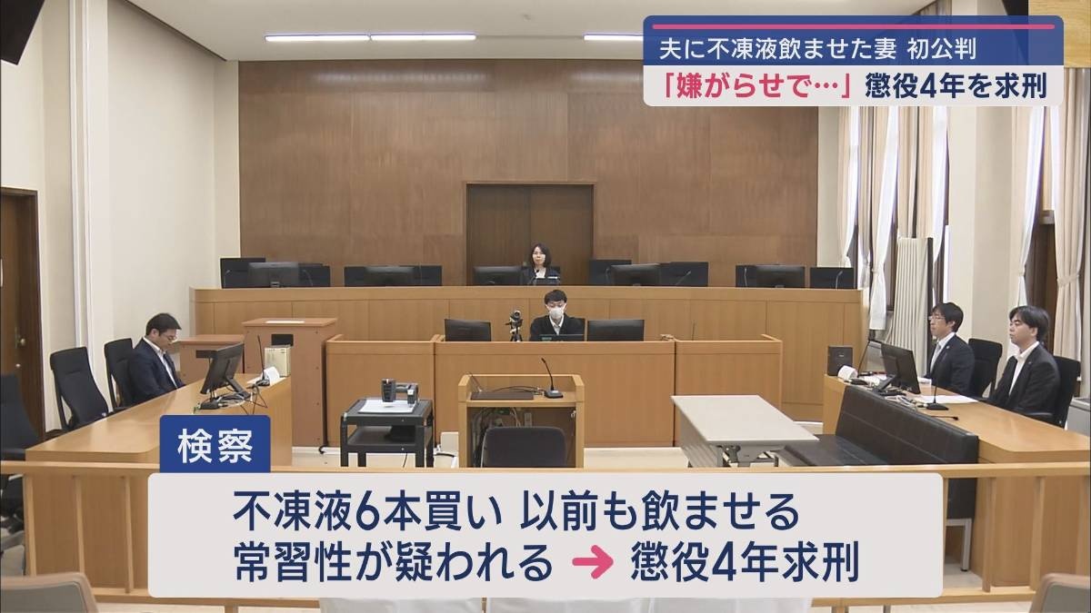 妻が夫に不凍液を飲ませ腎臓に重い障害を負わせたとされる事件で、妻は裁判で起訴内容を認め、検察は懲役4年を求刑しました。