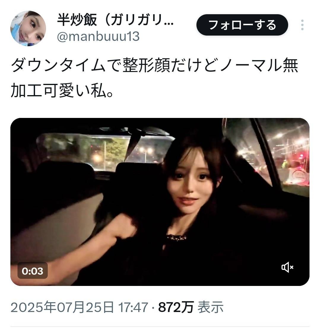 - 9 名前:ここからは表現の自由でイカせていただきます 投稿日時:2025/07/27(日) 13:52:17.901 ID:fFmlnVXP3