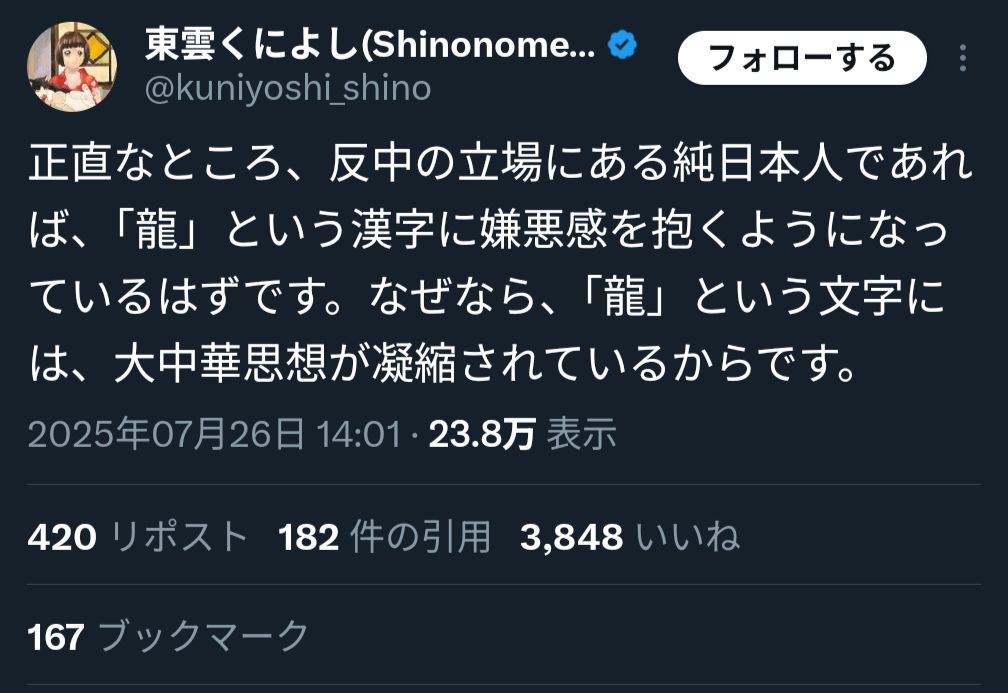 【正論】大物漫画家「純日本人なら『龍』と言う感じに嫌悪感を抱いて当然。この文字には『大中華思想』が凝縮されてるから」