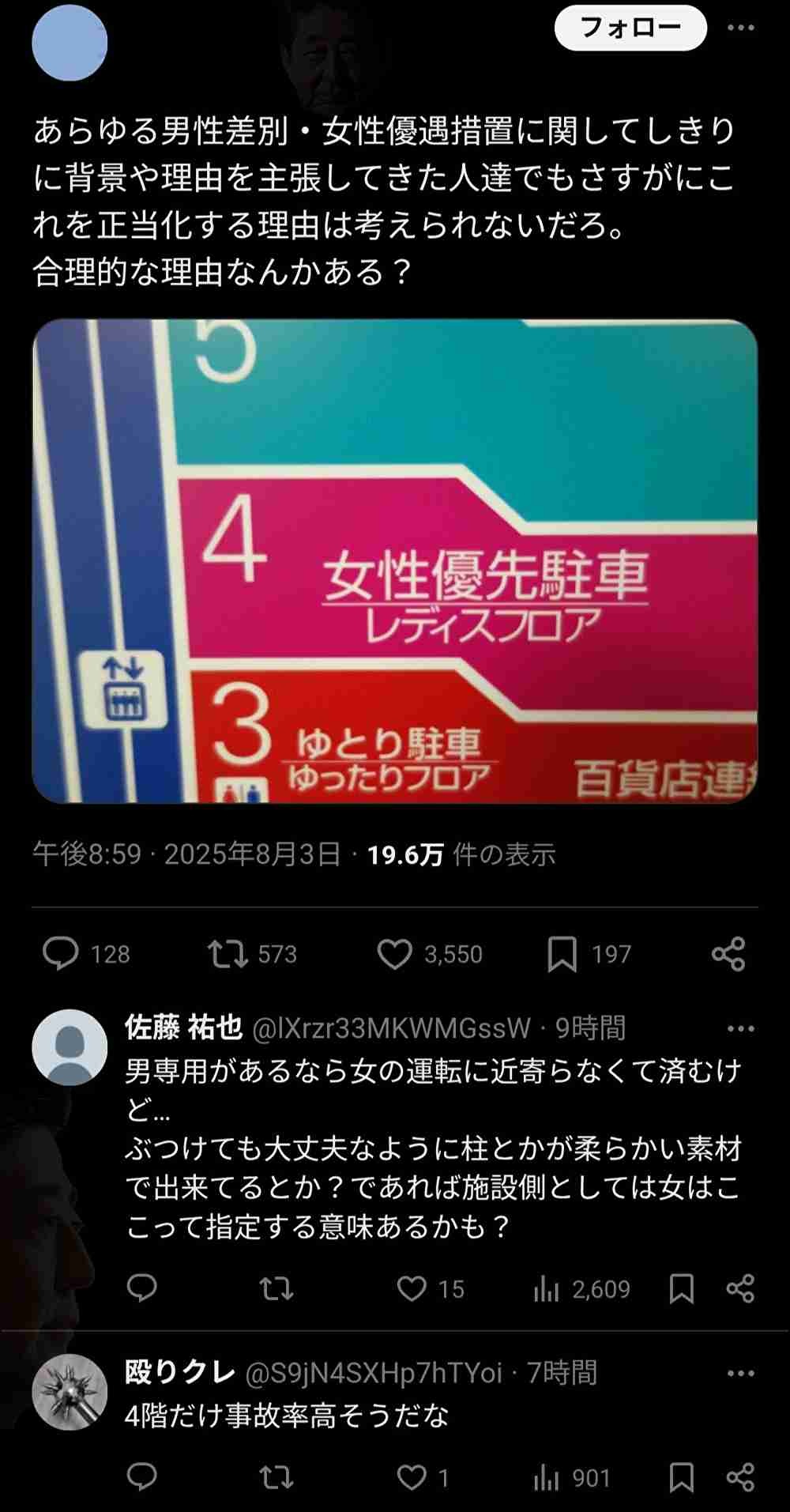ほなメンズフロアの駐車場も男性専用駐車場にしろよ