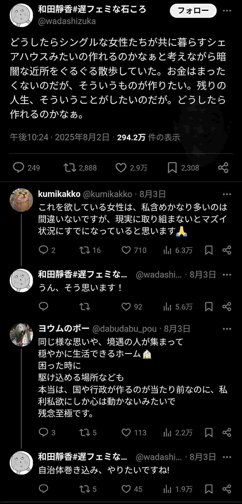 金なし男なしババア1「女性だけのシェアハウス作りたい。自治体巻き込みたい」