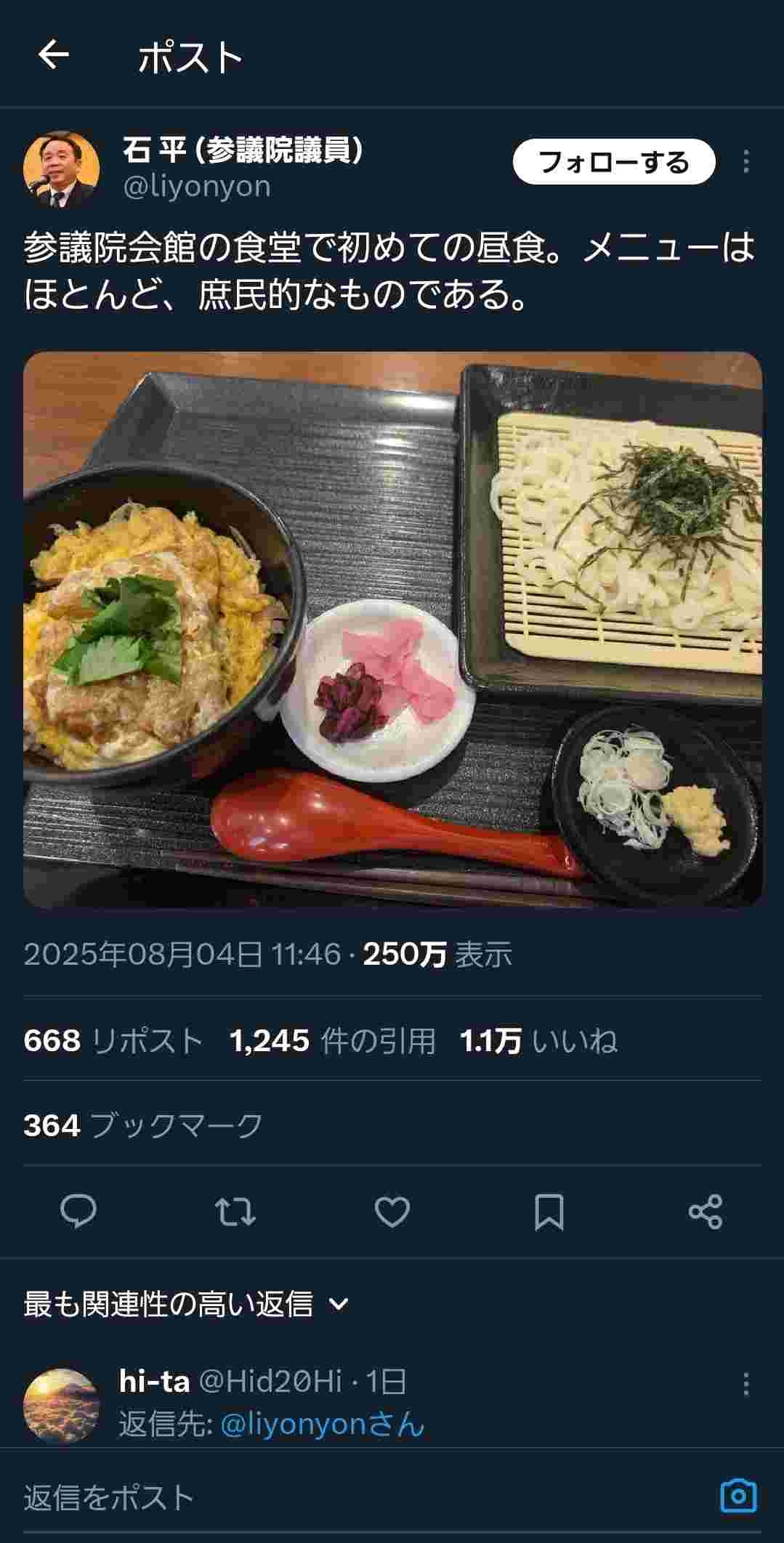 国会議員さん、カツ丼うどんセット定食を庶民的と投稿しネトウヨに袋叩きにされる