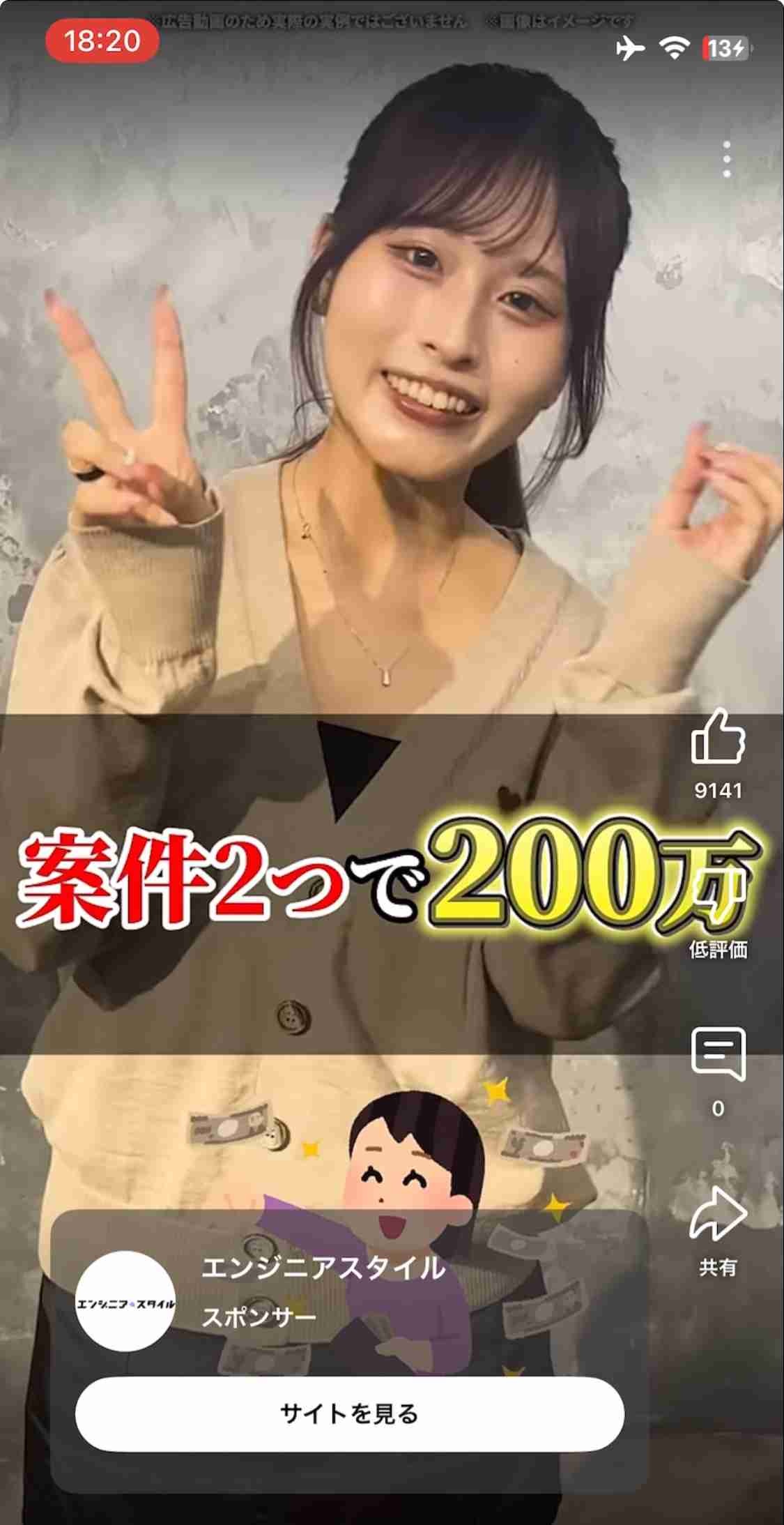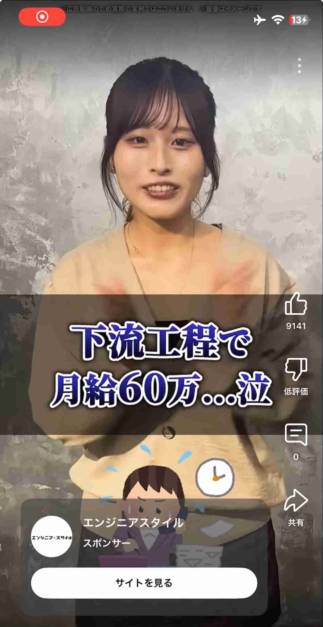 一番上に広告動画のため実際の実例ではありませんって書いてあるんやけどこんな書き方で許されるんか
