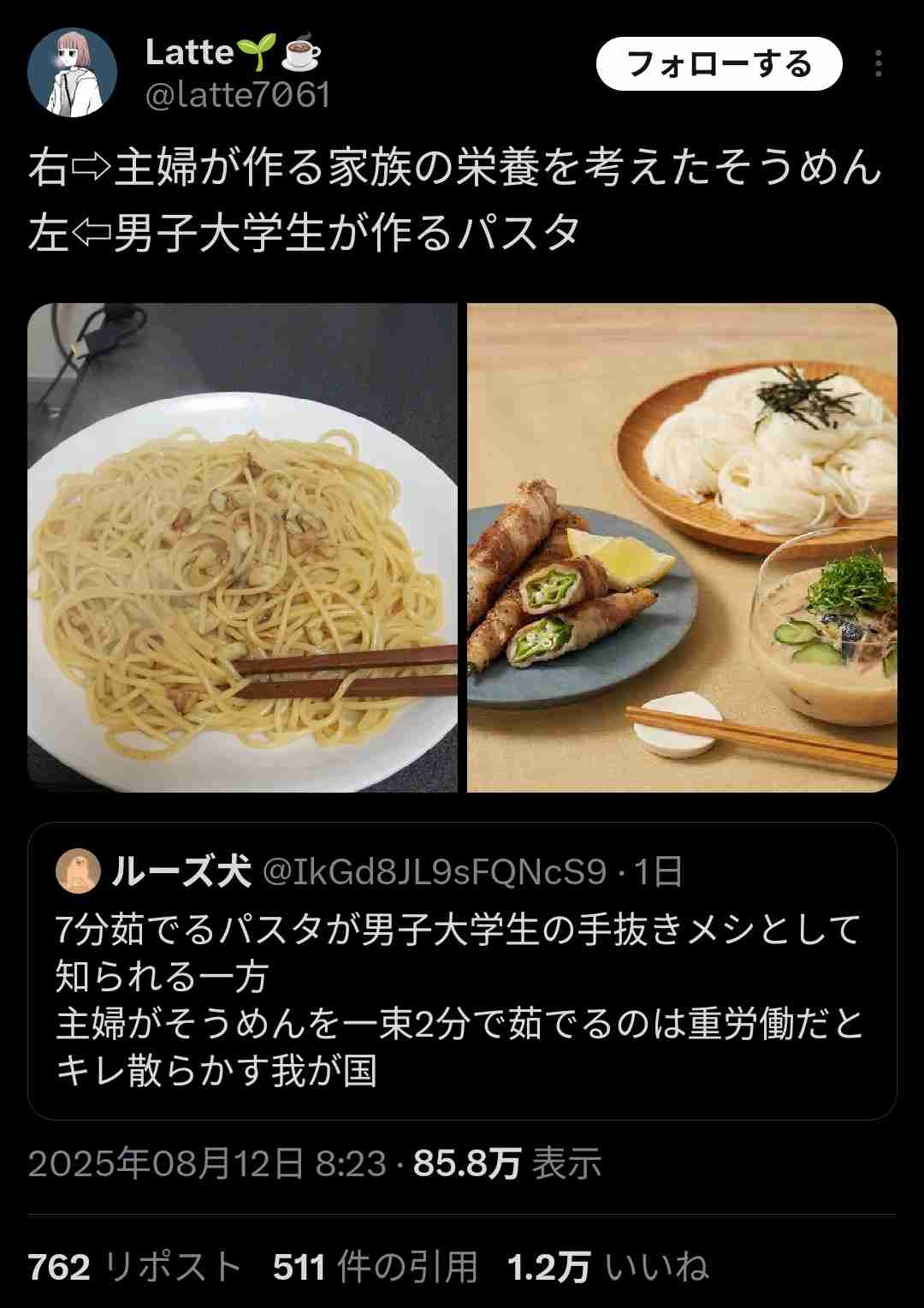 そんな事言いだしたらスパゲッティなんかいくらでも手間かけられるだろ - 67 名前:ここからは表現の自由でイカせていただきます 投稿日時:2025/08/12(火) 19:07:00.349 ID:aryFDynI6