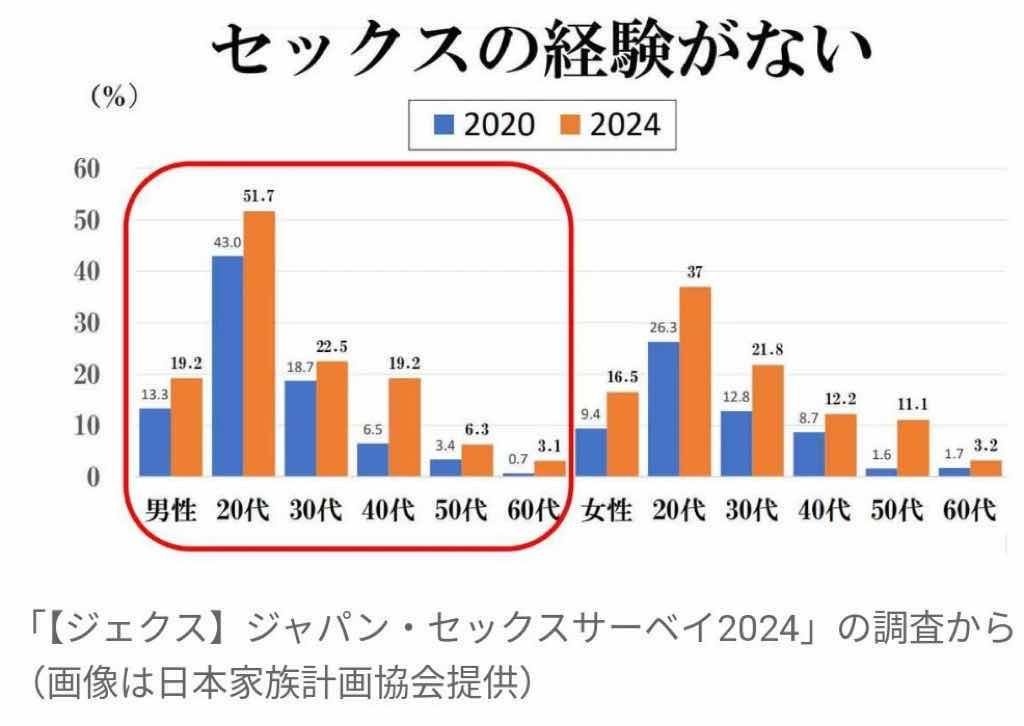 速報 20代 童貞51.7% 2024年😳