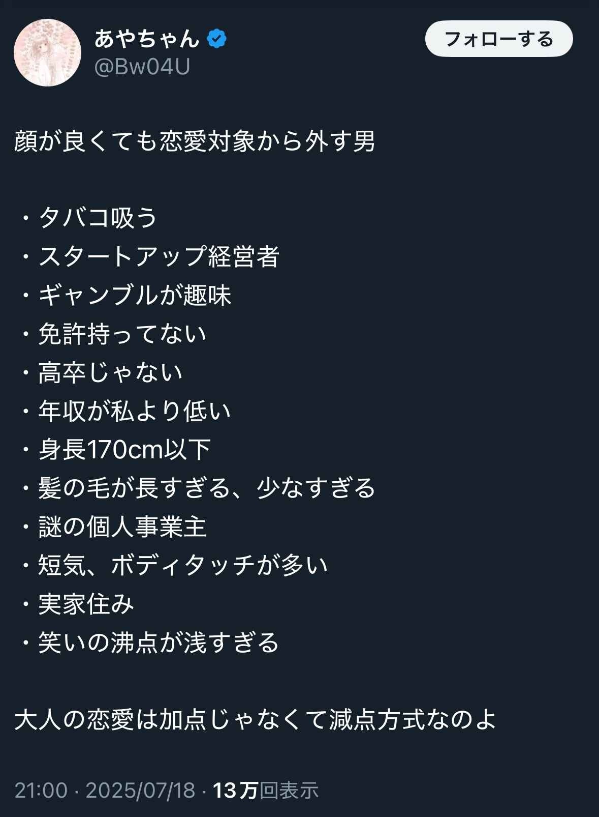 どんだけ他が優れててもこれらに1つでも当てはまったら一発アウト 退場🈲