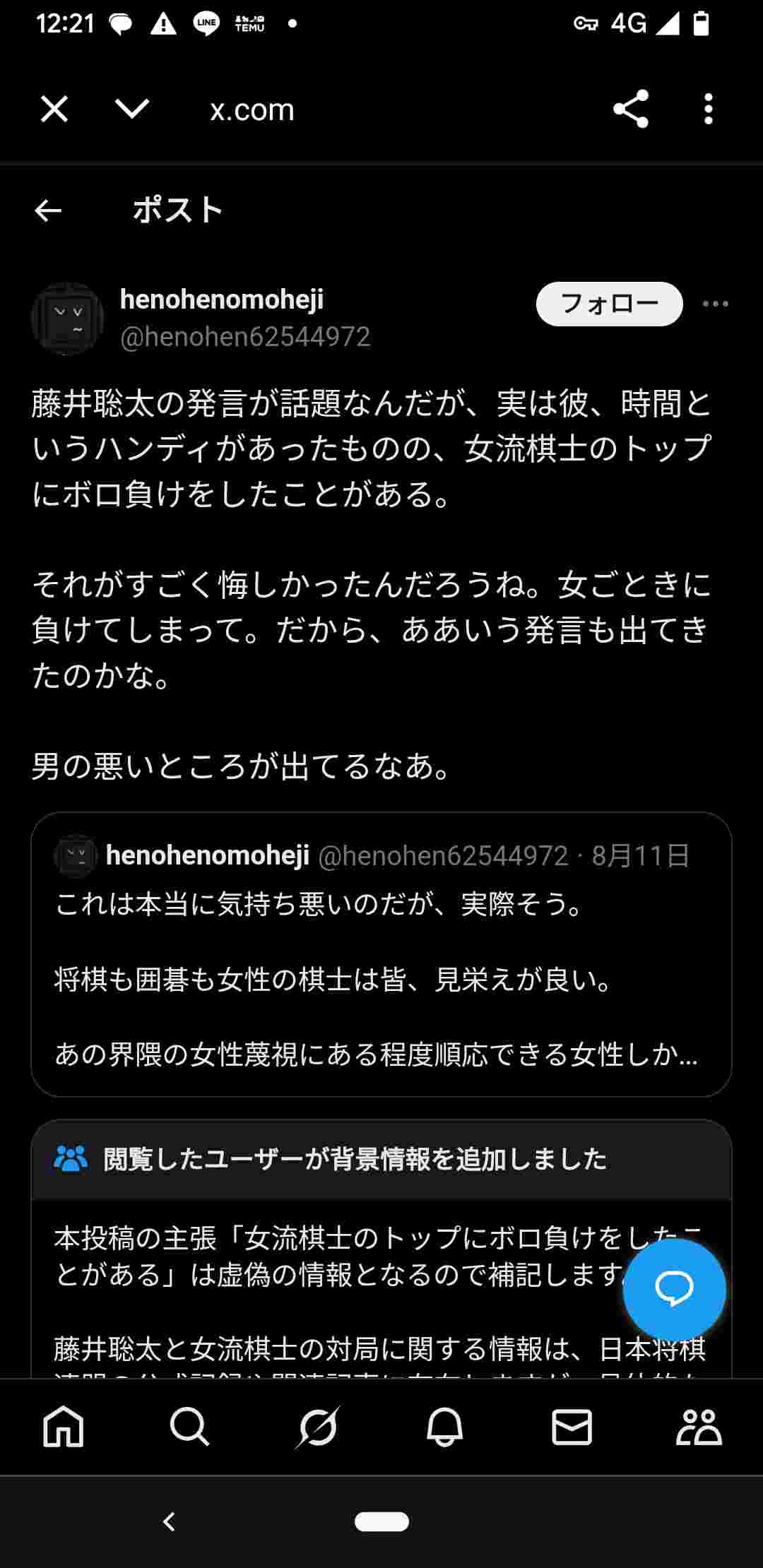 - “男”とかいう下駄を履いてるくせに棋力の担保とかアホなこと言うのやめてな🖐�💦