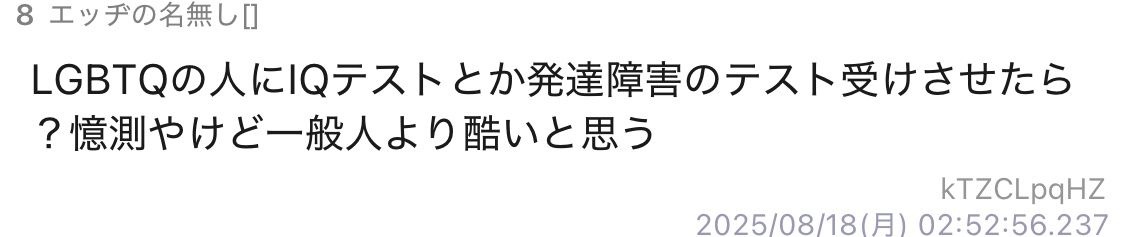 - 8 名前:ここからは表現の自由でイカせていただきます 投稿日時:2025/08/18(月) 02:58:30.223 ID:QBuNNkx61