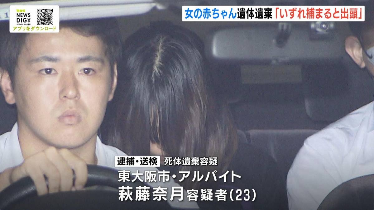 死体遺棄の疑いで逮捕・送検されたのは、東大阪市に住むアルバイト、萩藤奈月容疑者(23)で、12日ごろ、大阪市北区の扇町公園に、生後間もない娘の遺体を遺棄した疑いがもたれています。