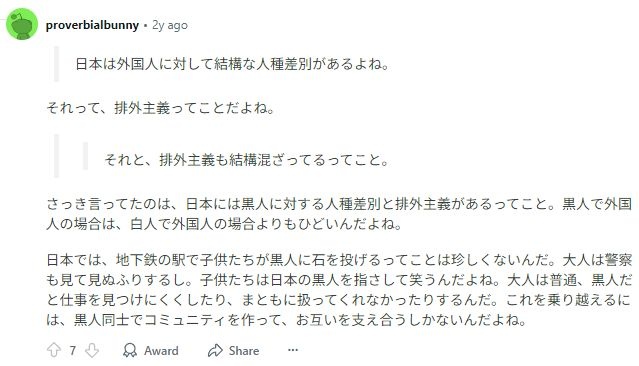 日本での黒人への人種差別、異常すぎてRedditで炎上www