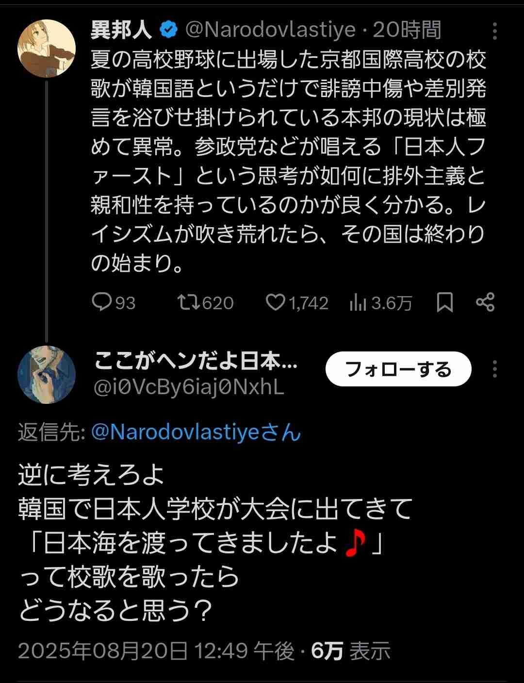 8月15日に日本人が登板することが許されなかった時点で説得力ゼロやな - 29 名前:ここからは表現の自由でイカせていただきます 投稿日時:2025/08/21(木) 10:10:25.068 ID:RR7GaDwlx