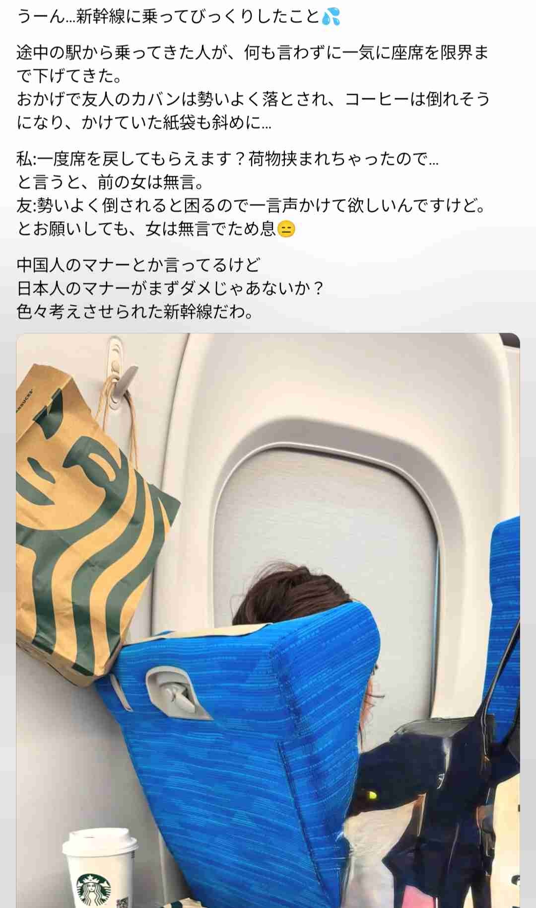- 新幹線なんて座席倒すのがデフォルトでスペースも十分確保されてんだから後ろになんかいう必要ねえわ