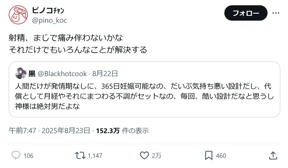 - 射精が苦痛だったら人類滅んでそう