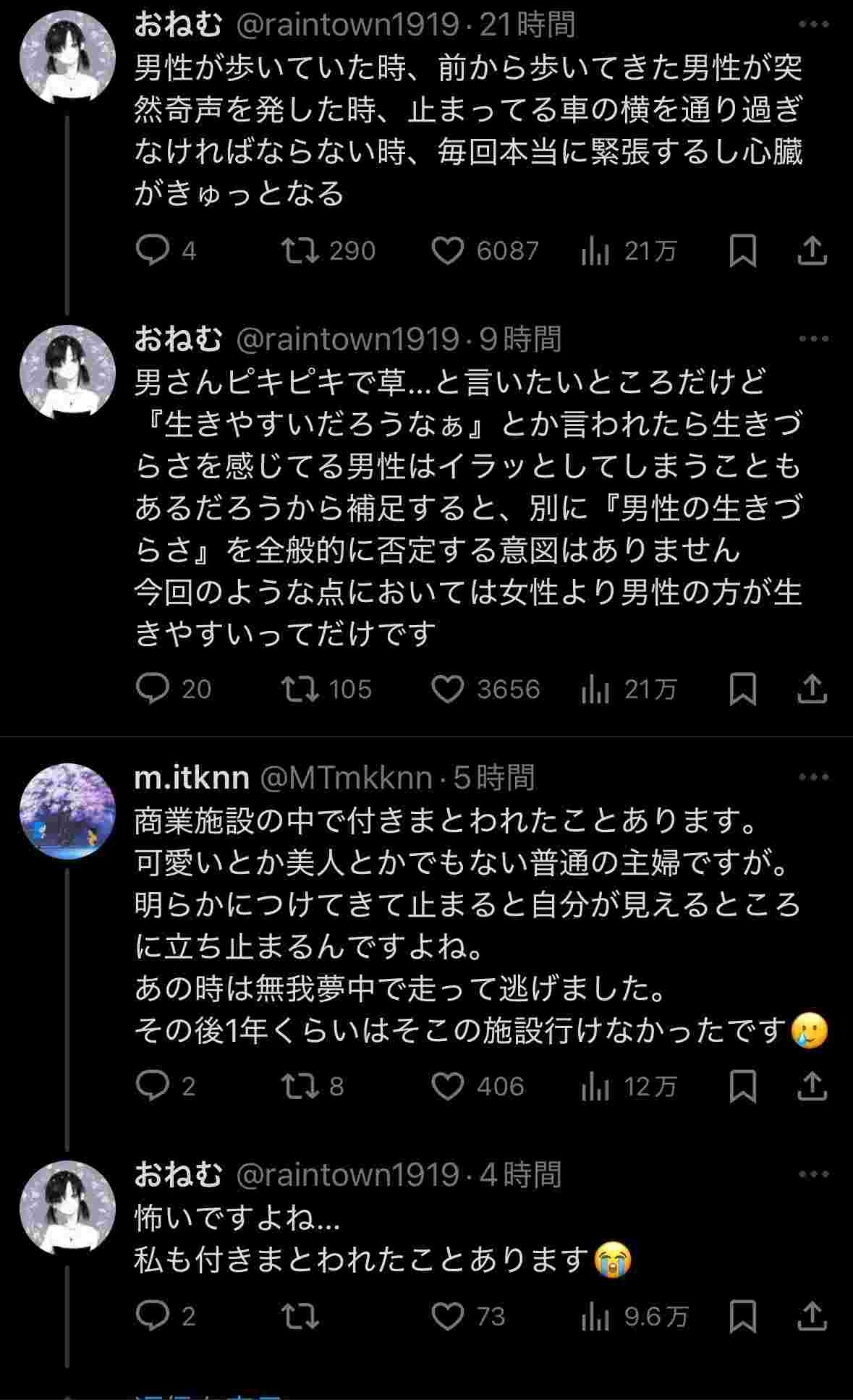 女性器「女性は常に『殺されるかも』って怯えながら生きてる 男は生きやすいから羨ましい」 www
